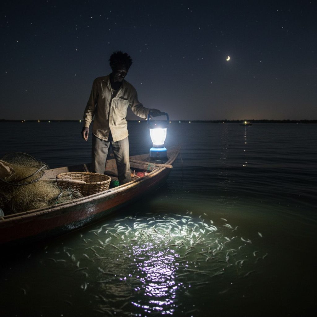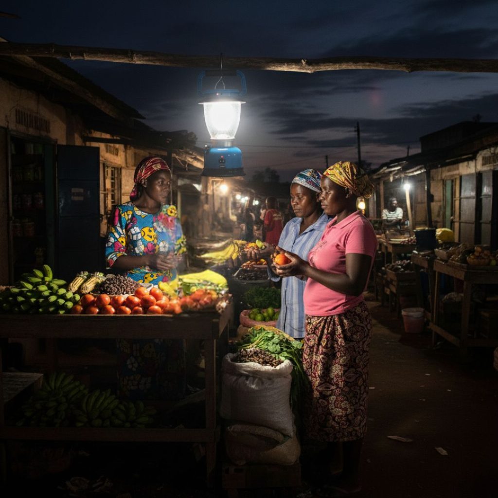 “Mama, with this solar lamp, you will never be left in the dark. It gives you bright, safe light at night. No worries, no stopping sales. It’s always dependable — every evening, your stall will shine and customers will see your goods clearly. And even better, you can charge your phone as you sell.